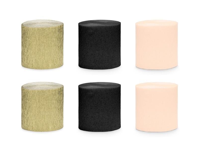 Krepa w kolorach brzoskwiniowych, czarnych i złotych, 6 sztuk, szerokość ok. 5 cm, długość ok. 10 m/rolkę(1 op. / 6 szt.) przeczytaj całość