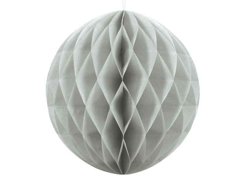 Kula bibułowa w kolorze jasnoszarym o średnicy ok. 40 cm. przeczytaj całość