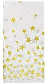 Obrus w złote gwiazdki - biały, 1 sztuka, wymiar 137x274cm. Uniwersalny biały obrus w gwiazdki, idealny na różnego rodzaju imprezy, w tym sylwestra, bal karnawałowy. Wykonany z materiału PEVA, zapewnia elegancki wygląd i trwałość. Obrus o wymiarach doskonałych do stołu bankietowego, dodaje...