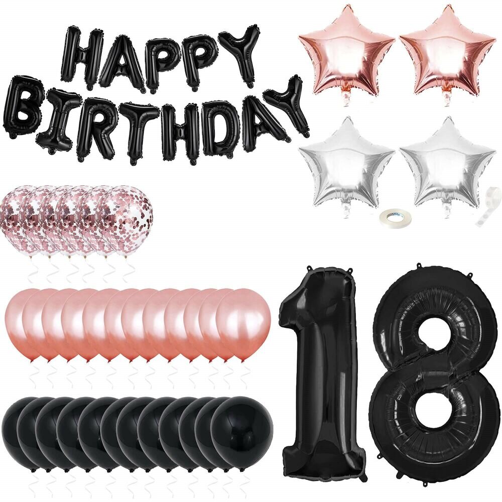 Sada narozeninových balónků 18, černo-růžové SPRINGOS PS0025