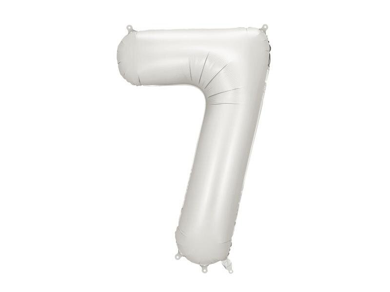 Balon foliowy satynowy Cyfra 7 w kolorze srebrnym, rozmiar przed napompowaniem ok. 100 cm (39''), rozmiar po napompowaniu ok. 86 cm (34''). Do napompowania powietrzem i helem. Zestaw zawiera słomkę. Balon jest samouszczelniający się. Posiada haczyki ułatwiające montaż balona do dekoracji. przeczytaj całość