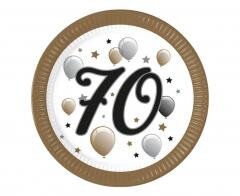 Talerzyki papierowe 70 urodziny 23cm 8szt