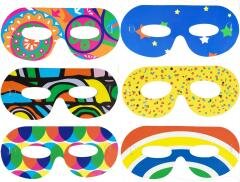 Zestaw papierowych masek, mocowanych na elastycznej gumce. Długość maski 16 cm. przeczytaj całość