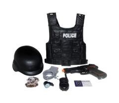 Zabawka z dźwiękami syreny policyjnej, strzelania, przeładowania broni oraz komendami policyjnymi w języku polskim: Do wszystkich jednostek: Zgłaszam napad, ruszajmy do akcji, Policja! Ręce do góry, Stój, bo będę strzelał, poddaj się, rzuć broń! Jesteś otoczony, Jesteś aresztowany, jedziemy na...