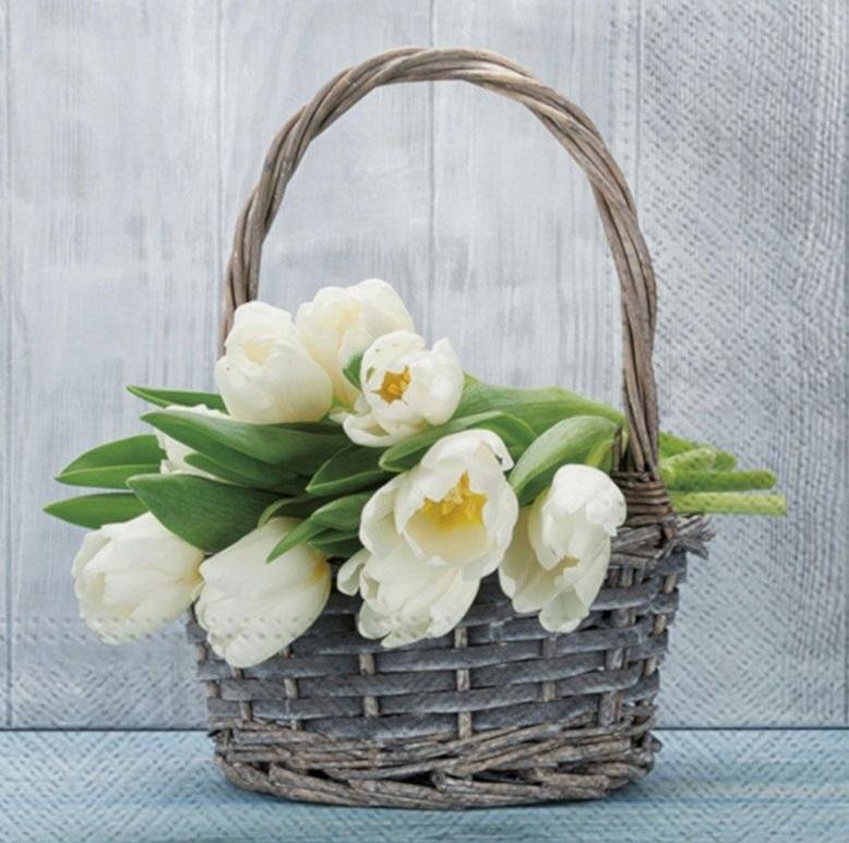 Serwetki Koszyczek z tulipanami 33x33cm 20szt