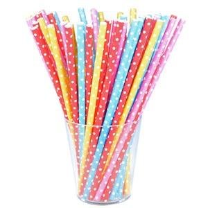 Słomki papierowe żółte w białe kropki (12 szt.) z certyfikowanego materiału przeczytaj całość