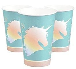 Kubeczki papierowe z motywem tęczowego jednorożca. Kubki w kolorach różu i turkusu. Wykonane w technologii, dzięki której nie rozmiękają w trakcie użytkowania. Zapewniają komfort i bezpieczeństwo użytkowania. Idealne na przyjęcia urodzinowe i bale dla dziewczynek. Stosować zgodnie z...