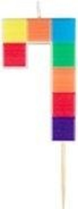 Świeczka urodzinowa w kształcie cyfry 7 z motywem kolorowych klocków. Idealna jako dopełnienie dekoracji tortu. Posiada element umożliwiający stabilne wbicie świeczki w ciasto. Wysokość świeczki to 7 cm. przeczytaj całość
