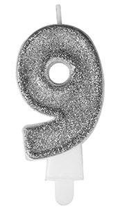 Świeczka cyferka brokatowa na podstawce Wysokość świeczki 7,5 cm Dostępne kolory: złoty, srebrny przeczytaj całość