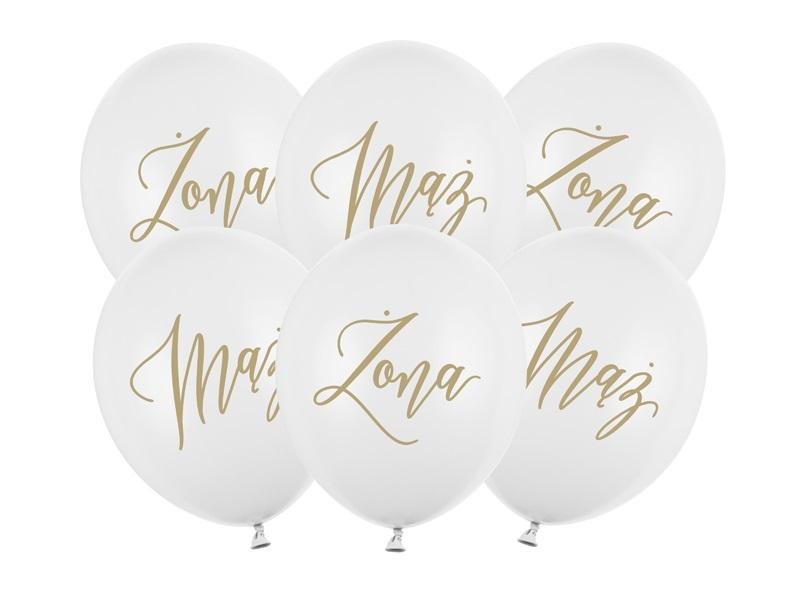 Balony Strong, Pastel Pure White ze złotym dwustronnym nadrukiem: Żona (3 szt.) i Mąż (3 szt.), średnica 30 cm.(1 op. / 6 szt.) przeczytaj całość