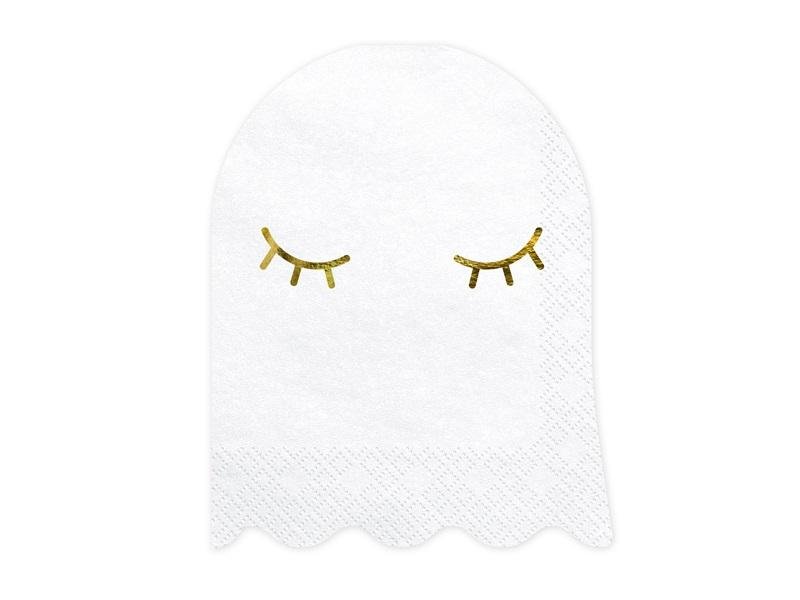 "Serwetki papierowe Duch w kolorze białym ze złotym metalizowanym nadrukiem, wymiary po rozłożeniu ok. 22.5 x 28 cm, wymiary po złożeniu ok. 11 x 14 cm. (1 op. / 20 szt.)" przeczytaj całość
