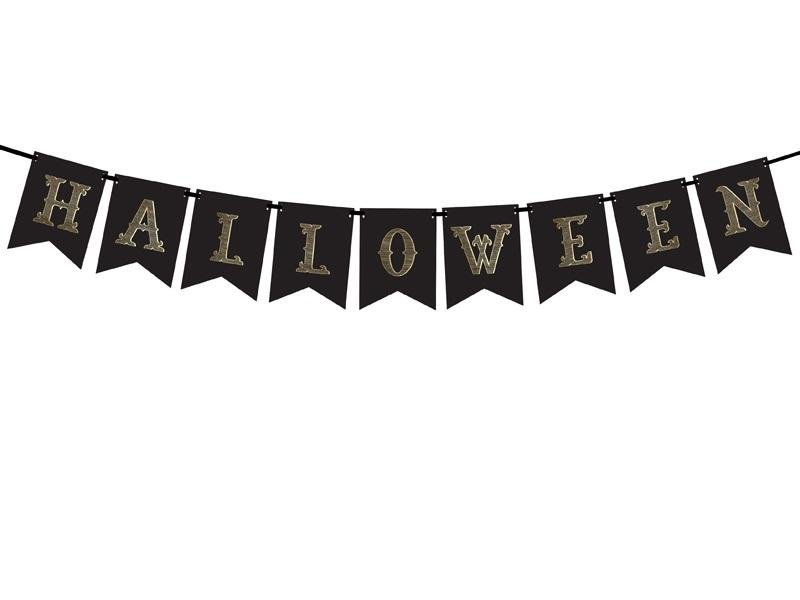 Girlanda chorągiewek - Halloween 20 x 175 cm. Ta girlanda to idealny dodatek na każde halloweenowe przyjęcie. Świetnie uzupełni Twoją dekorację na Halloween - możesz ją zawiesić na drzwiach, oknach lub nad stołem z przekąskami. Jej wyrazisty wzór doda odpowiedniej, halloweenowej atmosfery. Napis "Halloween" wykonany jest z wytrzymałego papieru, który wytrwa całą noc strasznej zabawy i przetrwa nawet najbardziej szalone halloweenowe przyjęcia. Na końcach przymocowana jest do mocnego sznurka o długości 2,5 metra, co umożliwia łatwe zawieszenie i umieszczenie w dowolnym miejscu w pomieszczeniu. Wysokość napisów wynosi 20 cm, co jest wystarczająco duże, by było widoczne z każdego miejsca w pokoju. Ta girlanda to znakomity dodatek do Twojej halloweenowej dekoracji, niezależnie od tego, czy zawiesisz ją na drzwiach, oknach, czy nad stołem z przekąskami. Jej intensywny pomarańczowy odcień doda dekoracji odpowiedniego, halloweenowego klimatu. Długość wraz ze sznurkiem: 2,5 m wielkość napisu: 20 x 175 cm