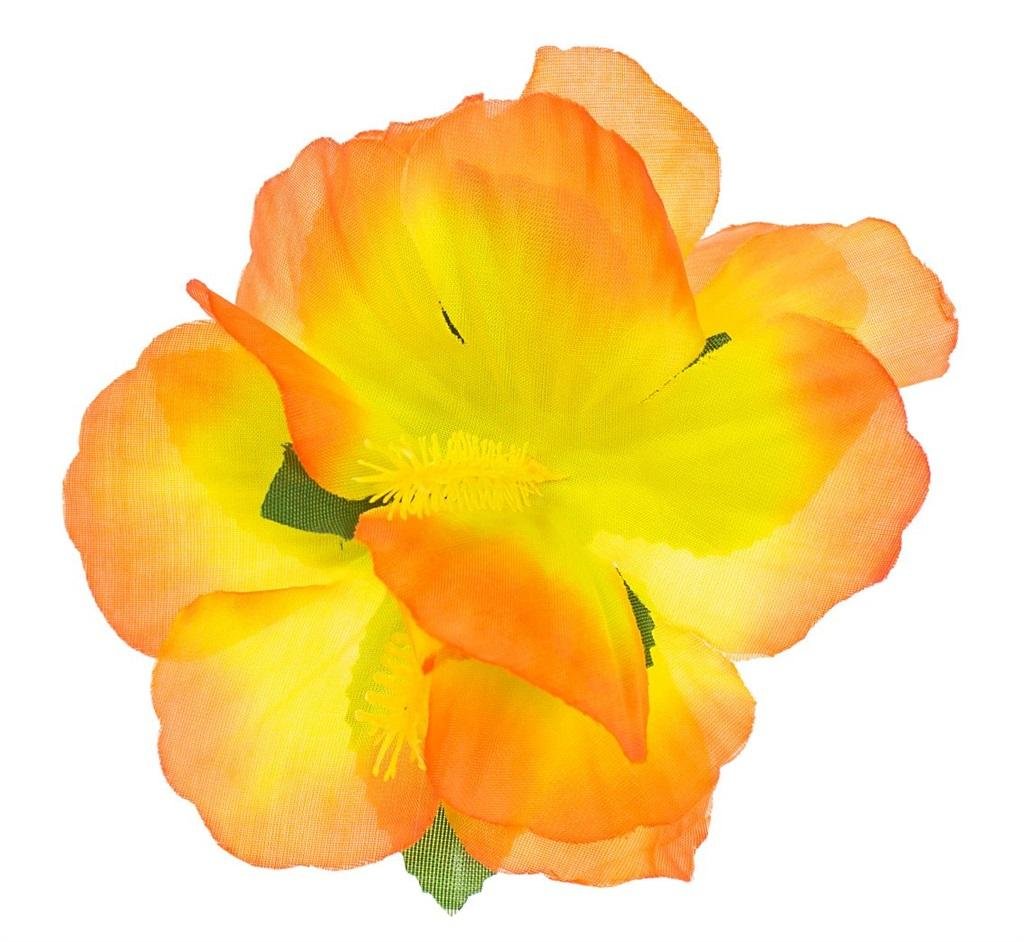 SPINKA HAWAJSKA DUŻA POMARAŃCZOWA Długość spinki: 7,5 cm Średnica kwiatka: 12 cm Przypinka z kwiatami w kolorze pomarańczowo - żółtym i zielonymi listkami. Mocowana na różowej spince typu "żabka". Kwiaty materiałowe, spinka plastikowa. przeczytaj całość