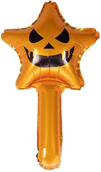 Balon foliowy z uchwytem z motywem halloweenowym - gwiazda. Może stanowić dekorację imprezy lub element kostiumu na Halloween. Balon do napełniania powietrzem. Rozmiar po napompowaniu - około 57 cm. 1 sztuka w opakowaniu. przeczytaj całość