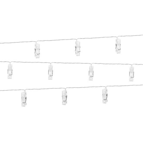 Klamerki z oświetleniem LED, które doskonale pasują do dekoracji ślubnych, ale mogą być użyte przy każdej innej imprezie, takiej jak przyjęcie urodzinowe, firmowy wieczorek czy sylwester. Tym prostym dodatkiem imprezowym dopracujesz każdą uroczystość do perfekcji Wymiary: 1,4 m (10 klamerek). Kolor: przezroczysty - lampka LED. Opakowanie: 1 szt.