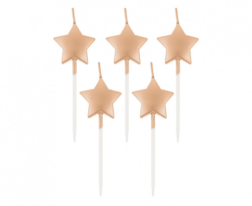 Dortové svíčky Stars - metalické Rose Gold 6,5 cm - 5 ks