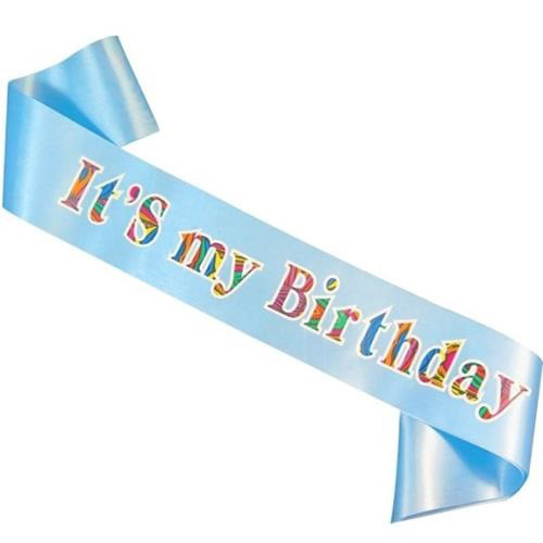 Slavnostní šerpa v modré barvě Happy Birthday.  Délka šerpy je 80 cm. šířka 9,5 cm przeczytaj całość