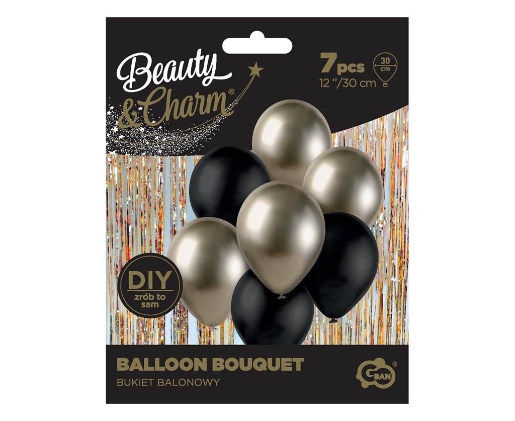 BUKIET BALONOWY BEAUTY&CHARMRozmiar w calach: 12Rozmiar w centymetrach: ok. 30 cmKolor: prosecco-czarnyIlość sztuk w opakowaniu: 7Kolekcja/Linia: Beauty&CharmProducent: Godan S.A. przeczytaj całość