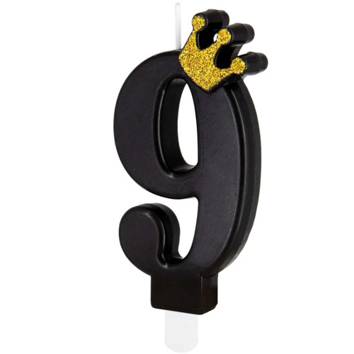 Dortová svíčka číslo 9 - černá s korunkou 8,8 cm
