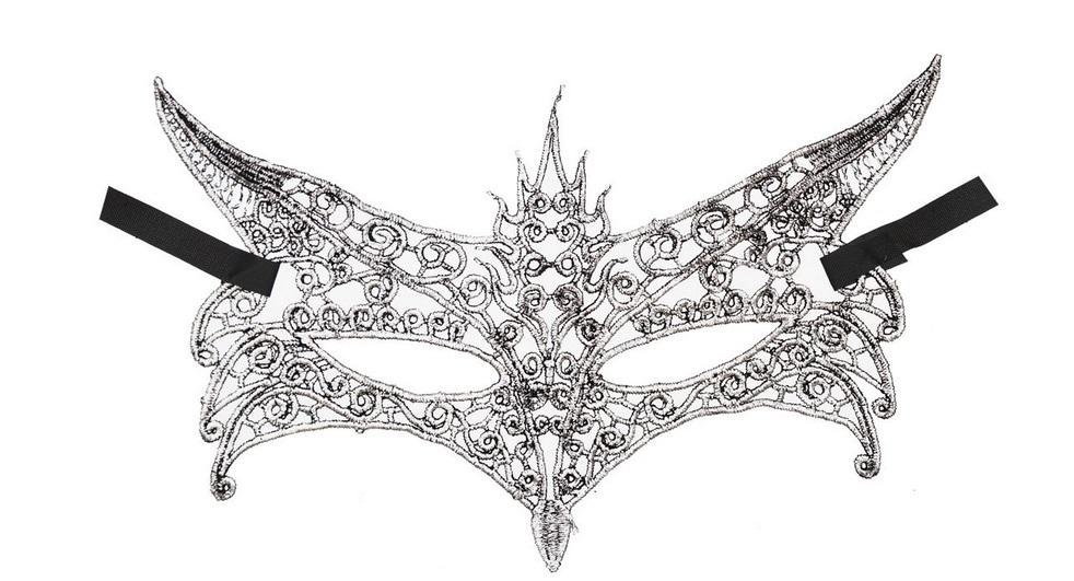 Koronkowa maska wenecka z czarną aksamitną wstążką. Dopasowany profil maski sprawia, że nie przeszkadza podczas zabawy. Eleganckie i efektowne uzupełnienie stroju. Rozmiar: 27 cm. Kolor: srebrny przeczytaj całość
