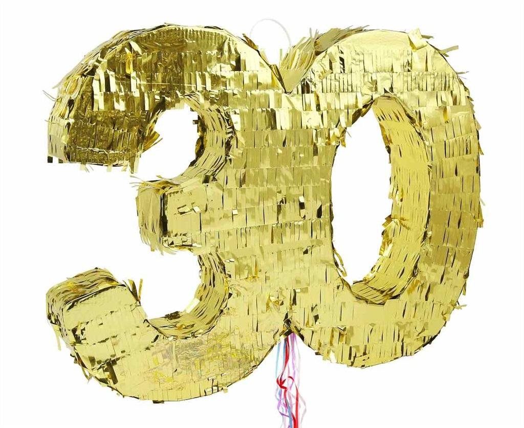 Piniata cyfra 30 metaliczna złota foliowa 50x40cm