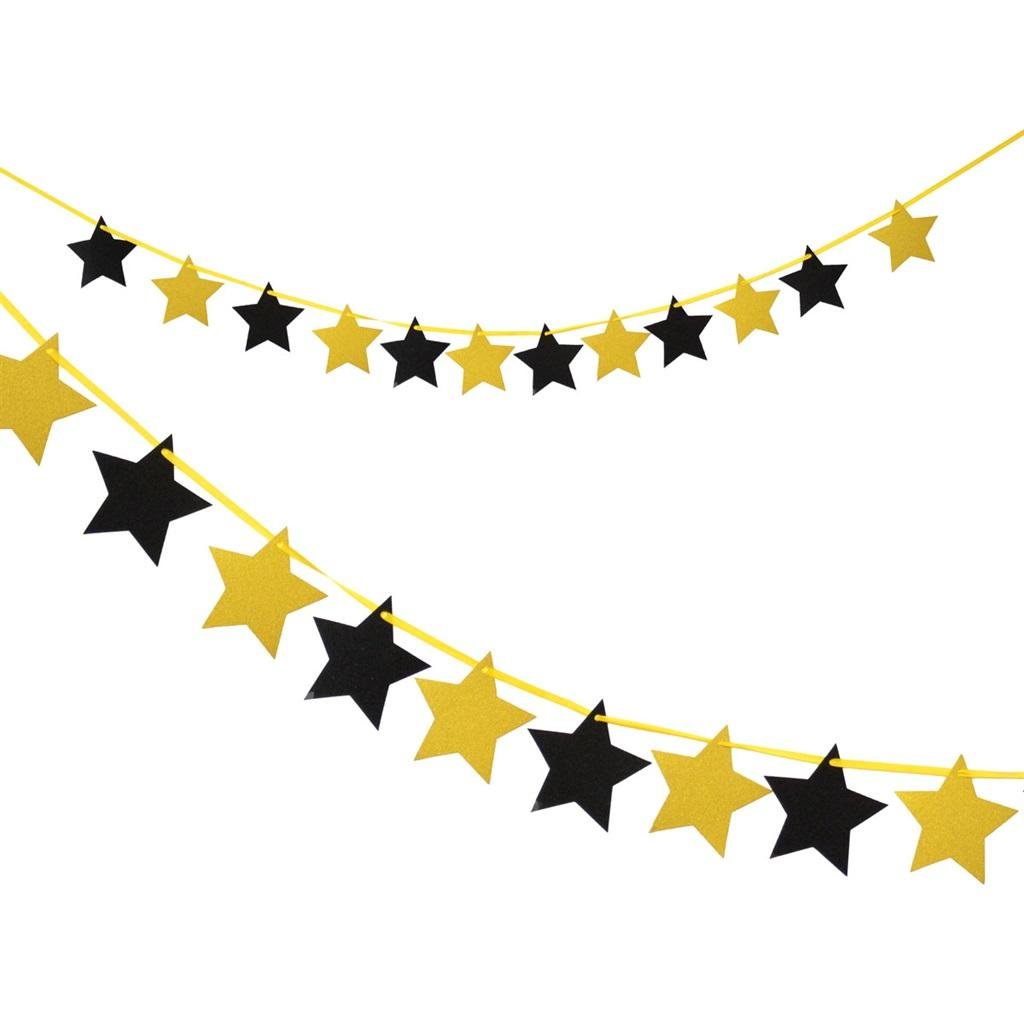 Papierowe gwiazdki złote i czarne na tasiemce do zawieszenia. Długość ozdoby 3 metry. przeczytaj całość