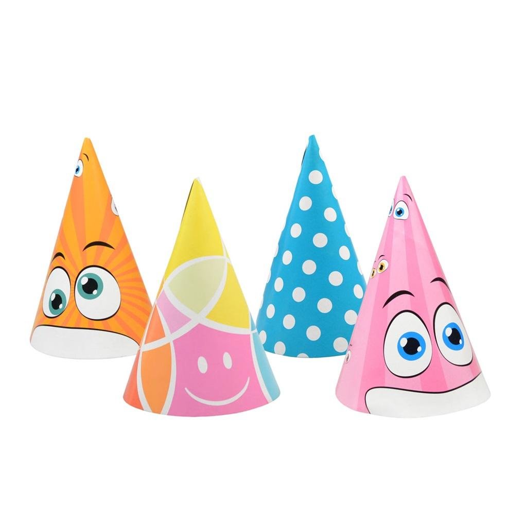 4 papierowe kolorowe czapeczki z elastyczną gumką. Wysokość czapeczki: 16 cm. przeczytaj całość