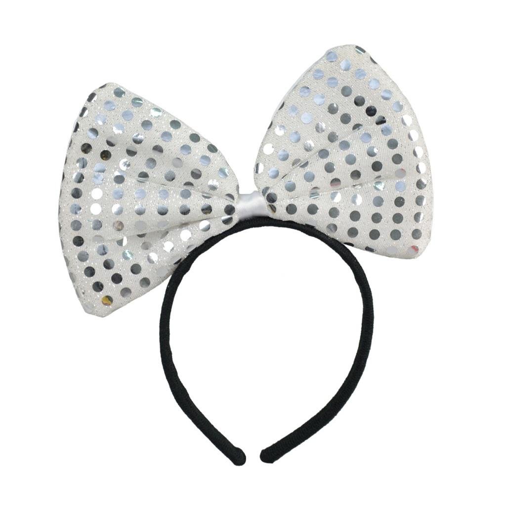Srebrna kokarda na opasce. Zdobiona jest połyskującymi kropeczkami. Idealne dopełnienie stroju na imprezę urodzinową, wieczór panieński lub zabawę karnawałową. Opaska wygodna w użytkowaniu, rozmiar uniwersalny. Rozmiar kokardy: 20 cm. przeczytaj całość