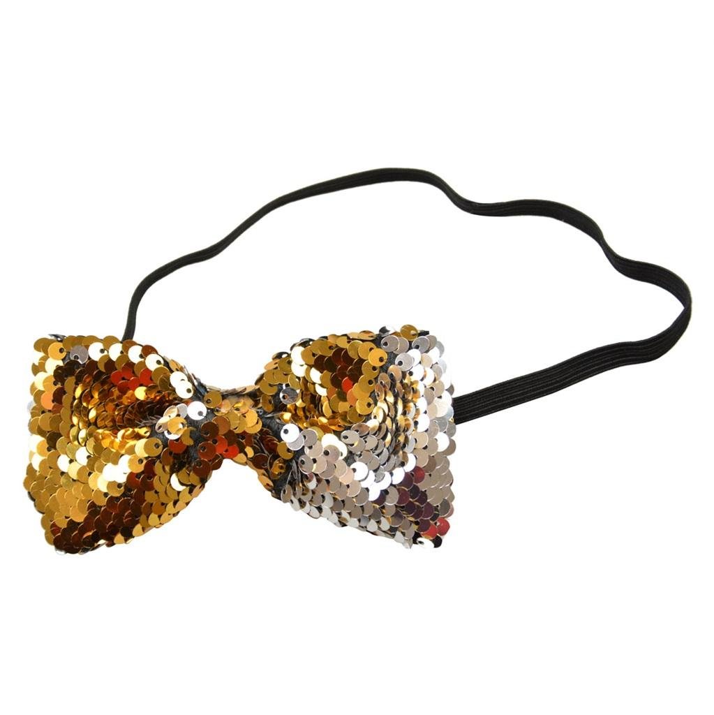 Muszka z cekinami dwustronnymi mocowana na elastycznej gumce. Przełam nudę - zmień kolory. Rozmiar: 11,5 x 6 cm Kolor: złoto-srebrny przeczytaj całość