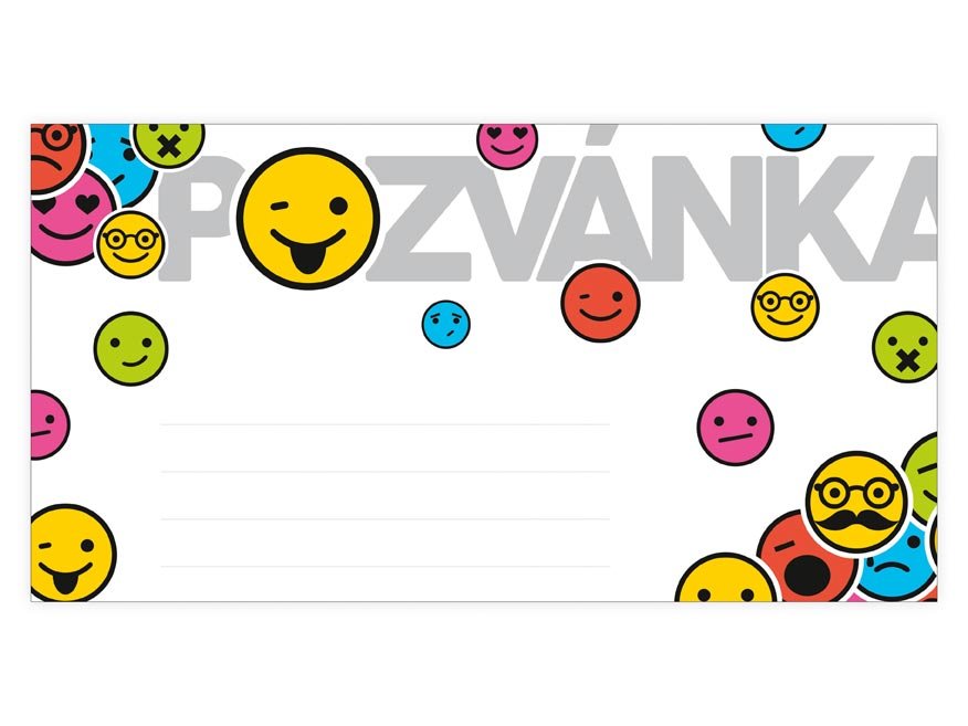 Zaproszenie na przyjęcie urodzinowe i imprezę z emotikonami. Masz przyjęcie urodzinowe i chcesz zaprosić znajomych? Wyślij im zaproszenie na imprezę! Na zaproszeniu są linie, gdzie można wpisać np. imię, datę i godzinę przyjęcia, miejsce albo krótką wiadomość.