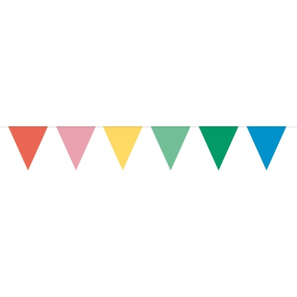 Girlanda proporczykowa Retro Pastel to idealny dodatek, który uprzyjemni i rozjaśni twoje przyjęcie urodzinowe, rodzinną uroczystość lub każdą inną okazję świąteczną. Dzięki delikatnym pastelowym barwom w stylu retro doda przestrzeni przytulnej i miłej atmosfery, którą doceni każdy gość.
