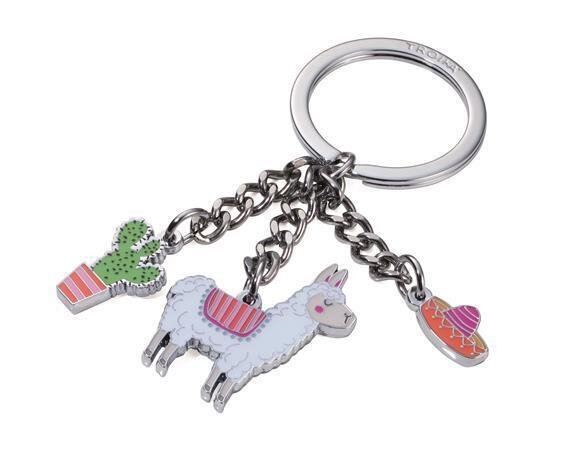 Moderní klíčenka se třemi přívěsky. Přívěsky: alpaka, kaktus, sombreroMateriál: litý kov a smaltHmotnost: 0,03kgRozměřy: 3x32x60mm (VxŠxD) przeczytaj całość