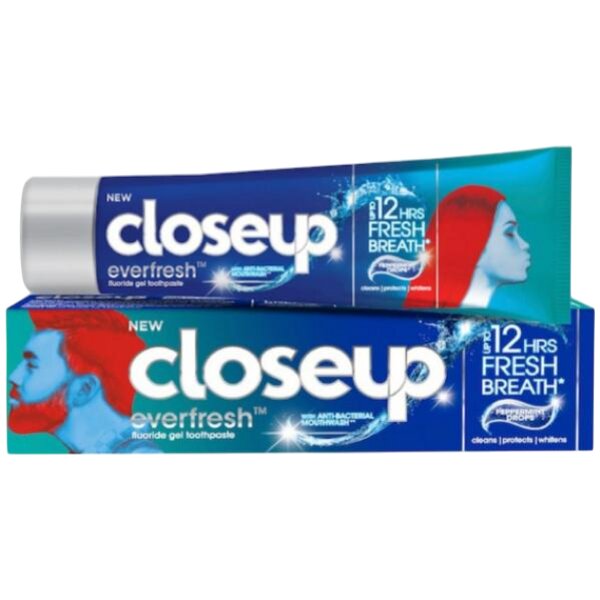 Closeup Everfresh Peppermint Drops zubní pasta, 90 gCloseup Everfresh Peppermint Drops zubní pasta kombinuje osvěžující mátovou vůni s praxí zaměřenou na každodenní pocit čistoty. Tato zubní pasta je navržena tak, aby dodala intenzivní mátovou svěžest po čištění a současně podpořila pocit hygieny...