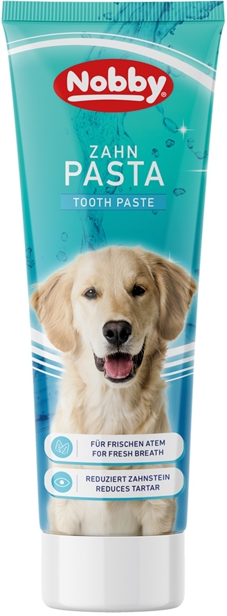 Pasta do zębów Nobby jest odpowiednia dla wszystkich psów, usuwa płytkę nazębną i redukuje kamień nazębny. W połączeniu ze świeżym zapachem mięty zapewnia także świeży oddech. Dla dobrej higieny jamy ustnej i zdrowych zębów. odpowiednia dla wszystkich psów ze świeżym zapachem mięty usuwa płytkę nazębną i redukuje kamień nazębny dla świeżego oddechu dla dobrej higieny jamy ustnej i zdrowych zębów Użycie: Zęby należy dokładnie czyścić 2x - 3x tygodniowo; przy nieprzyjemnym zapachu z ust lub przy większym spożyciu słodyczy zęby należy czyścić codziennie. Do prawidłowego czyszczenia zębów użyj szczoteczki do zębów Nobby. Najlepiej najpierw zapoznać psa z pastą. Zwilż szczoteczkę, nałóż małą ilość pasty i pozwól psu jej spróbować. Następnie rozpocznij czyszczenie zębów. Po czyszczeniu zapewnij psu odpowiednią ilość wody do picia. Opakowanie: 100 g Producent: Nobby (Niemcy)