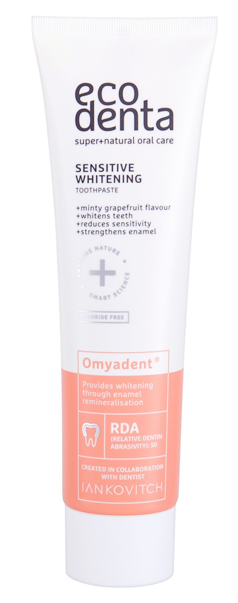 Hledáte zubní pastu pro citlivé zuby s bělicím účinkem? Už nehledejte. Profesionál na zubní péči firma Ecodenta má tu pravou pastu právě pro vás. Sensitive Whitening Toothpaste Omyadent je bělící zubní pasta, která jemně pečuje o citlivé zuby. S příjemnou chutí máty a grapefruitu se budete na...