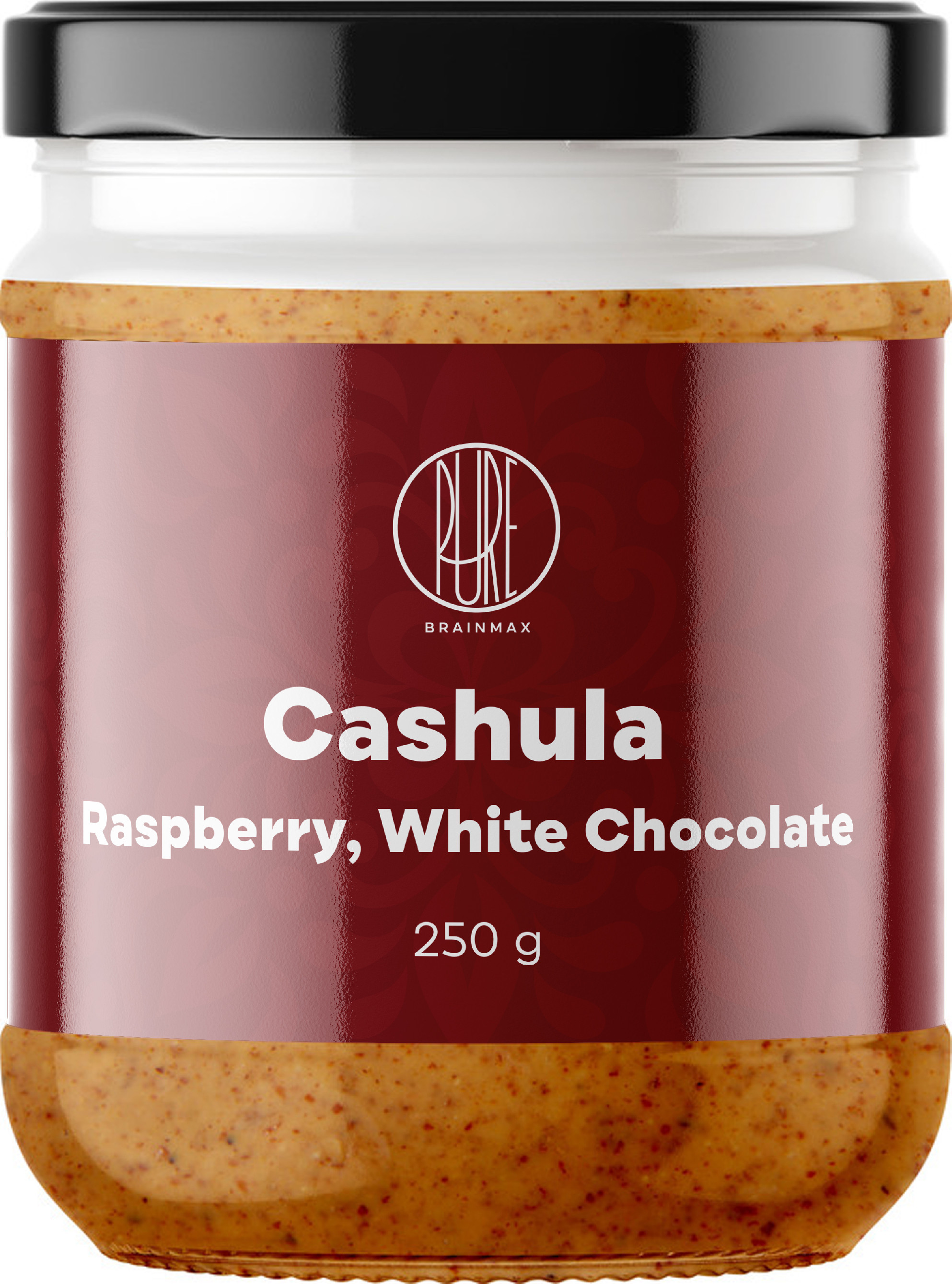 BrainMax Pure Cashula, Kešu krém s malinami a bílou čokoládou, 250 g