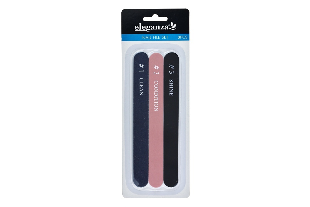 Sada 3 kusů pilníků na nehty na čištění a leštění nehtů. Dodávané v plastovém blistru na papírové podložce. Rozměr pilníků je přibližně 18 x 2 cm. przeczytaj całość