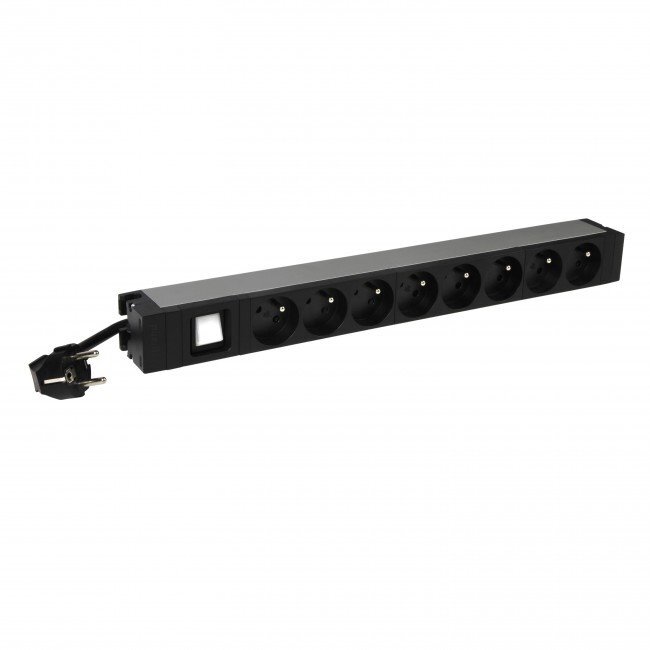 LEGRAND PDU Základní, 1U-19", výstup 8x 230V (CZ/FR), 1-fáze 16A, vstup CZ vidlice - kabel 3m, vypínač s LED indikací na