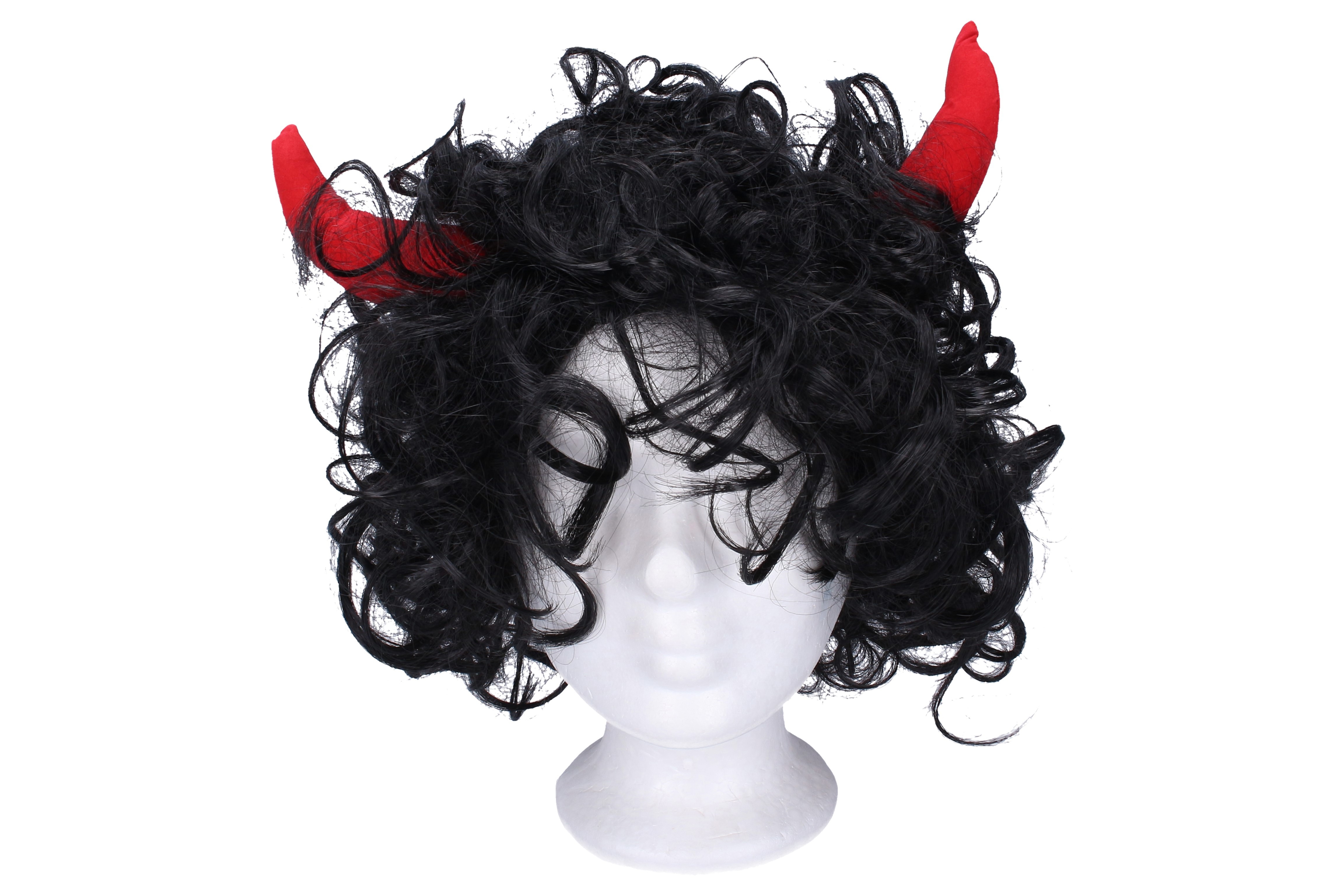 - Czarna peruka z dodatkiem czerwonych diabelskich rogów.