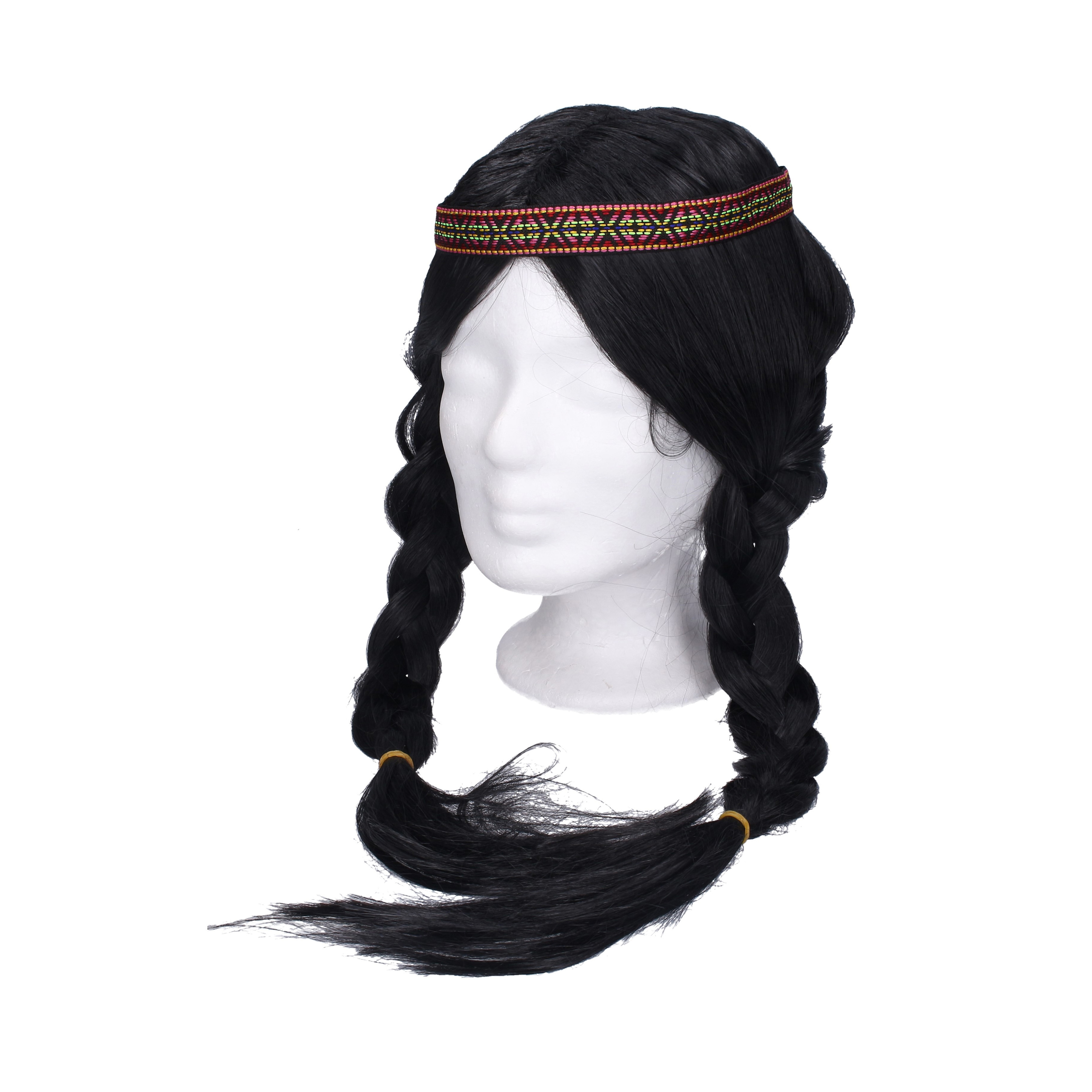Czarna peruka z zaplecionymi warkoczami i opaską będzie świetnym dodatkiem do kostiumu Indianina na karnawałową imprezę! przeczytaj całość