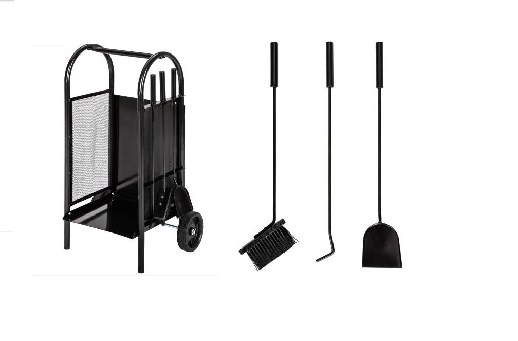 całkowite wymiary: 43x39x81 cm miejsce na drewno: 30x30x47 cm narzędzia: łopatka, pogrzebacz, zmiotka materiał: metal kolor: czarny pakowane w kartonie przeczytaj całość