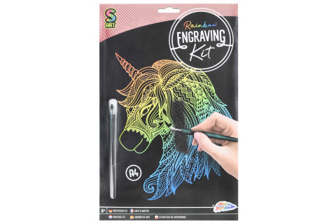 Vyškrabávací obrázek s obrázkem jednorožce. Balení obsahuje vyškrabávací obrázek, 2 zkušební kartičky, podložku a vyčkrabávací pero. Rozměr balení cca 33 x 21 x ,05 cm. Věk 8+ przeczytaj całość