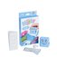 Pieczątka do tkanin. Stempluje do 3 wierszy po 15 znaków na wiersz. Zestaw zawiera: 1x puzzle pieczątka do tkanin, z czarną poduszeczką 1x pęseta 1x taśma do prasowania na ciemne tkaniny, 1 m 20 etykiet w dwóch rozmiarach, które można prać w pralce Litery, znaki i ikony przeczytaj całość