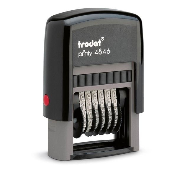 Samobarwiąca pieczątka numerująca 6 cyfr Wysokość cyfr 4,0 mm Dostarczamy z czarnym wkładem Wkłady zamienne: czarny 231.456, niebieski 114.789, czerwony 213.554, zielony 223.654 przeczytaj całość