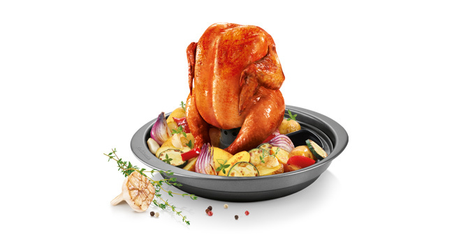 Vynikající pro pečení celého kuřete, kuřecích křídel či stehýnek i s přílohou. Kuře se propéká rovnoměrně ze všech stran, není třeba je obracet. Příloha se připravuje spolu kuřetem na roštu pekáče. S vysoce odolným antiadhezním povlakem proti připalování, vhodné do všech typů pečicích trub a do... przeczytaj całość