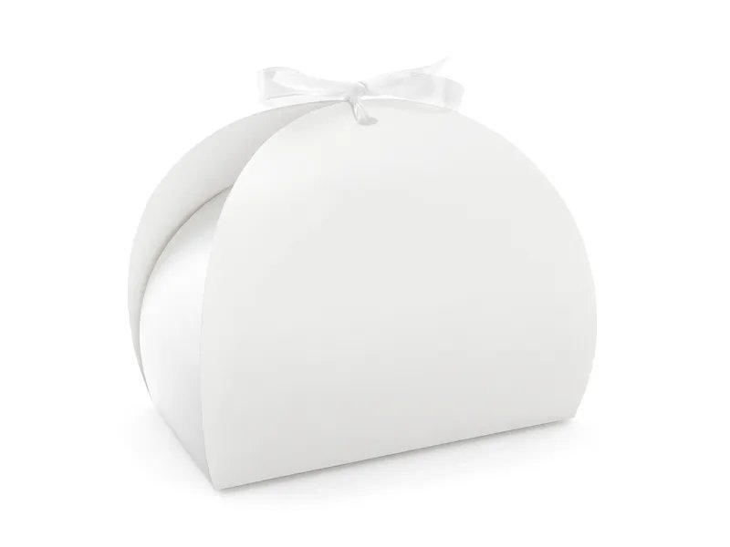 Bílá papírová krabička na výslužku se zaoblenými tvary a mašlí, která na svatbě nesmí chybět. Každý host si tak ze svatby odnese svou část. Rozměry: 16,5 x 14 x 9,5 cm. Balení: 1 ks. przeczytaj całość