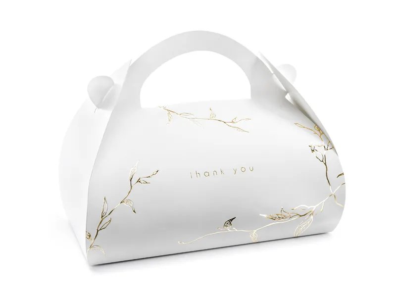 Krabička na výslužku, zlaté lístky - Thank you 16 x 8.5 x 9.5 cm - 10 ks