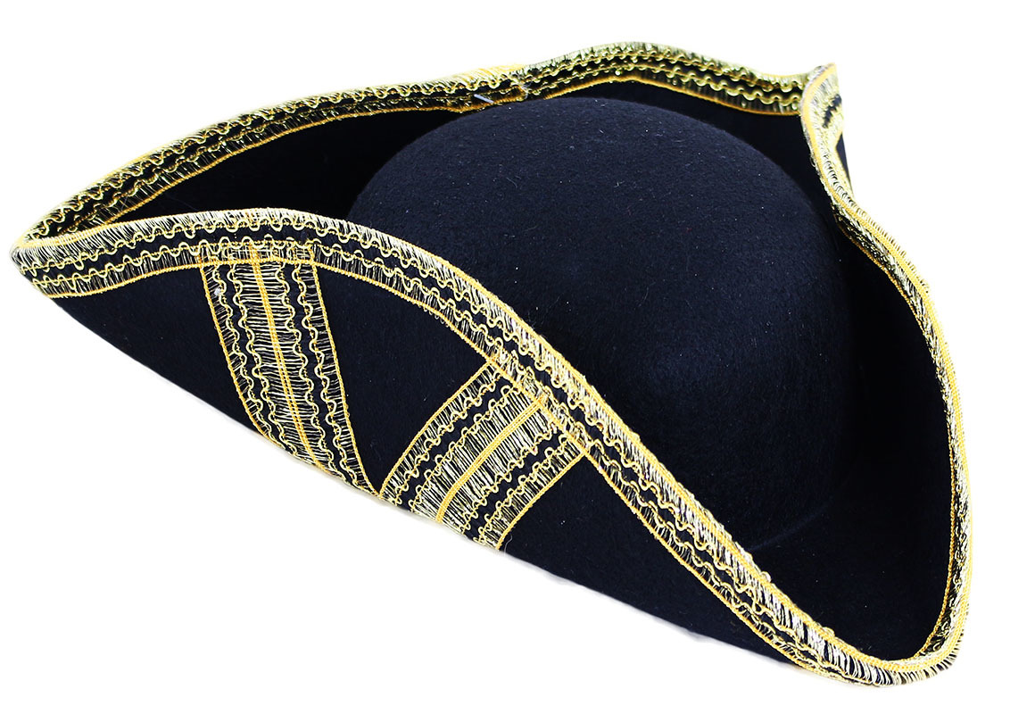 Piękny kapelusz jak dla prawdziwych piratów! Ten czarny elegancki kapelusz o średnicy 20 cm jest przeznaczony dla dorosłych i jest ozdobiony złotą lamówką. Idealny dodatek do kostiumu pirata! przeczytaj całość