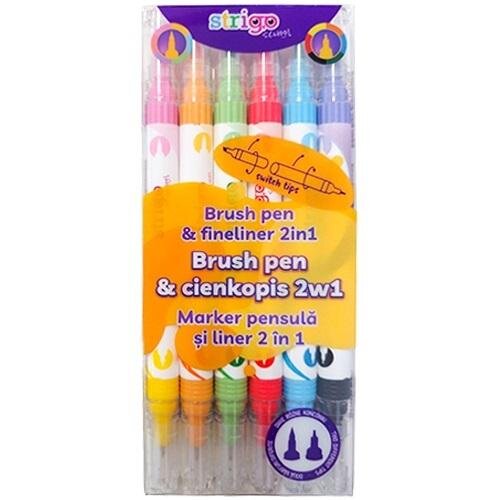 Dwustronny cienkopis i flamaster z końcówką brush w 6 kolorach przeczytaj całość