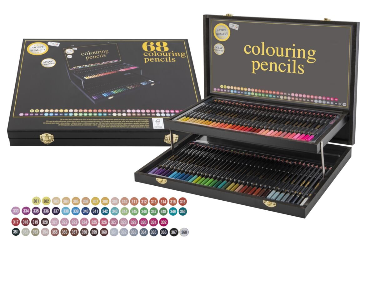 Barevné pastelky v dřevěném boxu, 68 ks